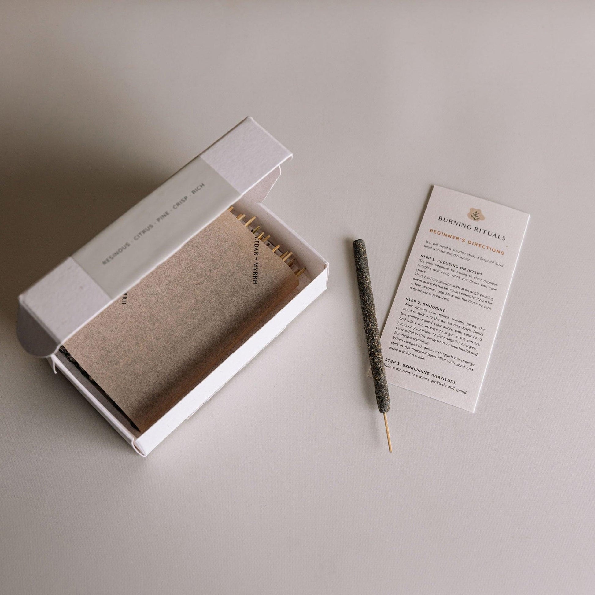 * Please note: This item does not include an incense holder. A set of 30 mini (4. 2") hand-rolled incense sticks made in Peru using pure black copal resin and natural gum acacia. Features a pine-forward, citrusy scent with rich and crisp undertones. Known as “Mayan Copal,” this sacred resin has been used in Indigenous Mesoamerican ceremonies for spiritual cleansing and ancestral offerings. Traditionally burned to ground the spirit, clear heavy energy, and protect energetic boundaries. Supports root chakra alignment, emotional resilience, and inner stability. Burn time: 40–45 minutes per stick. Smoke intensity: medium to heavy. Sustainably harvested and made with 100% natural ingredients. No synthetic additives.