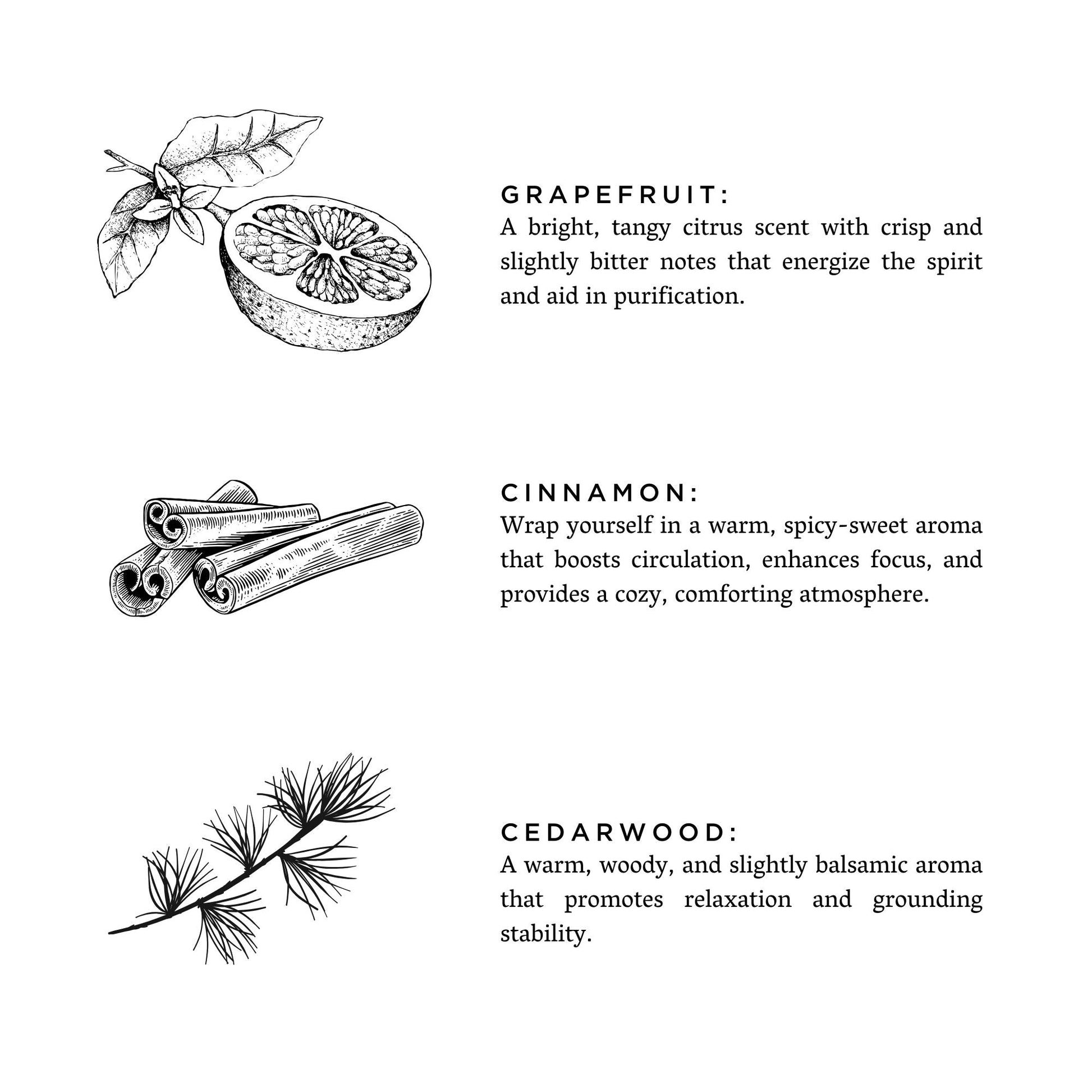 - Top Note: Uplifting Grapefruit – a zesty and refreshing citrus aroma that awakens the senses.