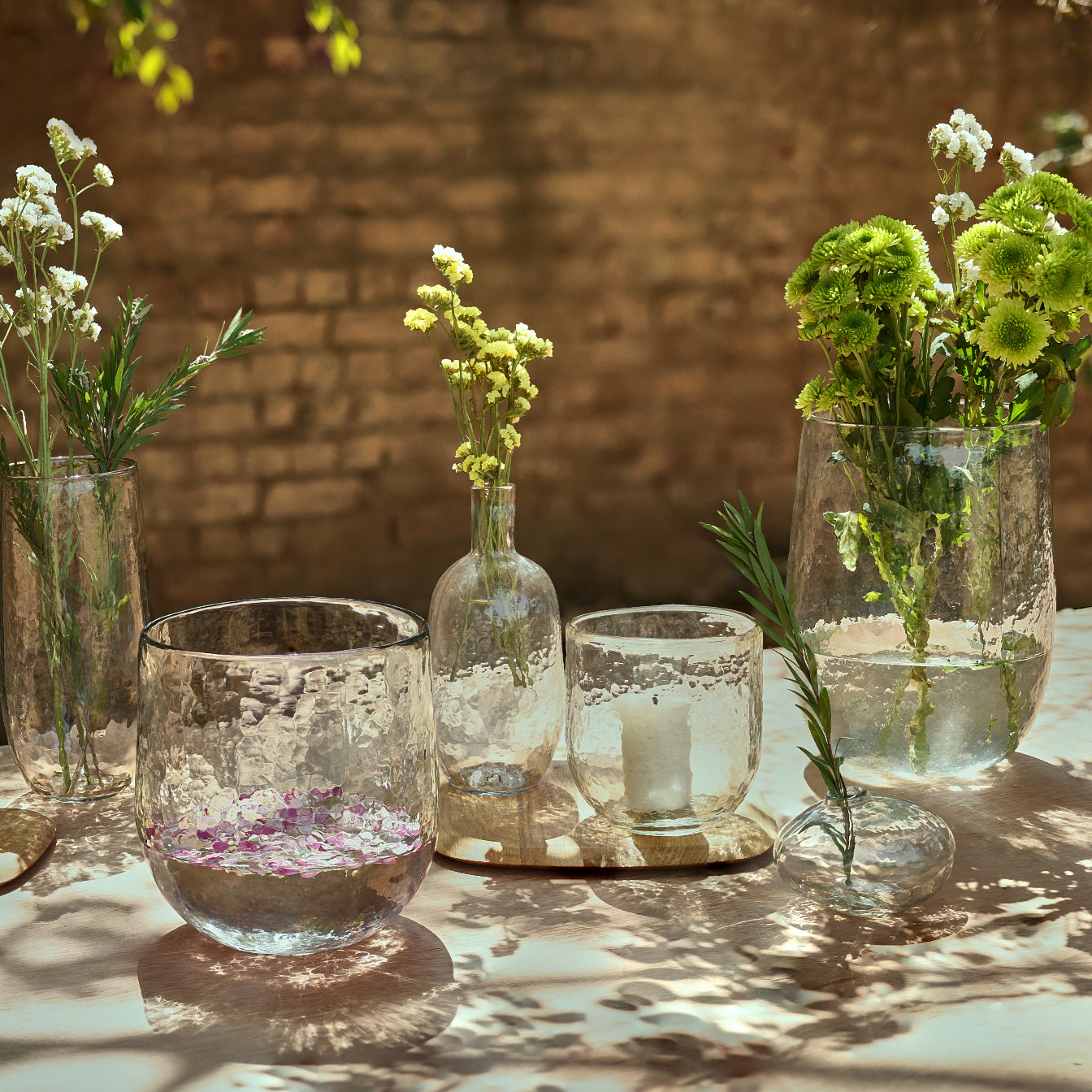 Just add a large pillar candle to this jumbo hurricane and you can instantly transform your environment, indoors or out. This rounded, oversize piece creates an elegant space for a burning candle to safely illuminate a room or patio for hours, with its softly dimpled surface reflecting the flame. Made by hand from recycled and new glass, each hurricane is an eye-catching creation. If not used for candles, the hurricane can serve as a terrarium, fish bowl, punch bowl, or centerpiece for floating blossoms or other collections.
